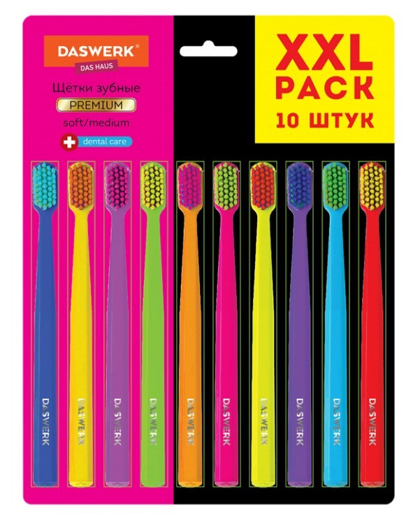 Приобретайте наборы зубных щёток DASWERK в суперэкономичной упаковке – ваш запас зубных щеток на целый год!
