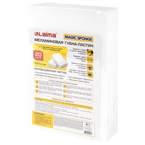 Цвет: Меламиновая губка-ластик LAIMA превосходно удаляет следы от перманентных маркеров, стойкие чернила и въевшуюся грязь с предметов интерьера, бытовой и офисной техники. Важно! При работе с губкой влажными должны быть и губка, и обрабатываемая поверхность.