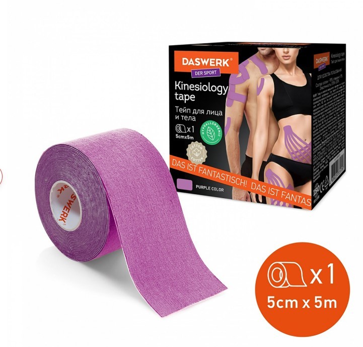 Кинезио тейп/лента для лица и тела, омоложение и восстановление, 5 см х 5 м, фиолетовый,