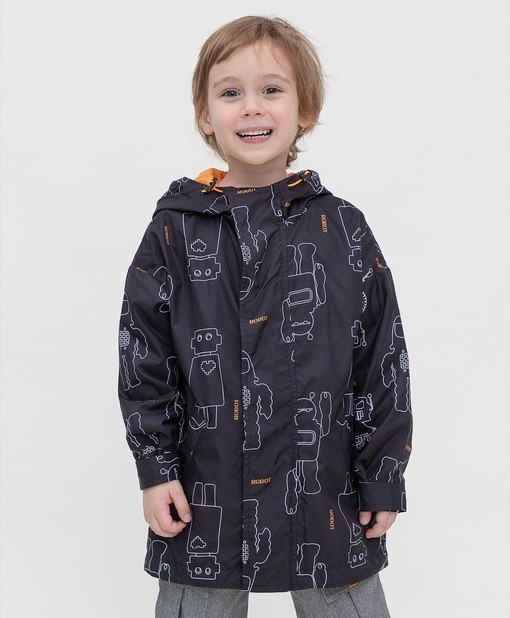 Цвет: Ветровка с принтами отвечает всем требованиям модных тенденций. Подкладка и кулиска по талии отлично сохраняют тепло. Ветрозащитная планка на липучках и капюшон с утяжкой обеспечивают ветрозащиту. Капюшон с застежкой на липучку не отстегивается. Молния с защитой подбородка, два накладных кармана. Куртка станет замечательным дополнением детского ежедневного образа.