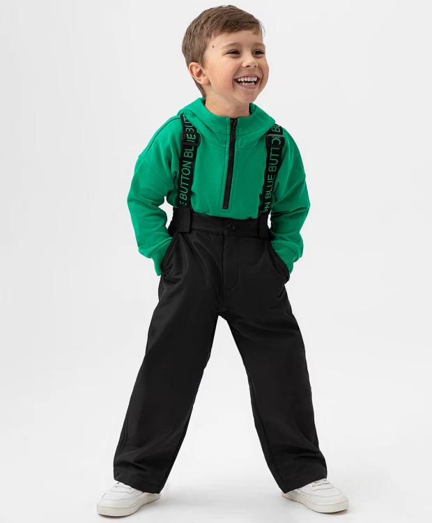 Брюки утепленные демисезонные с подтяжками черные Button Blue (222BBBMC64020800)