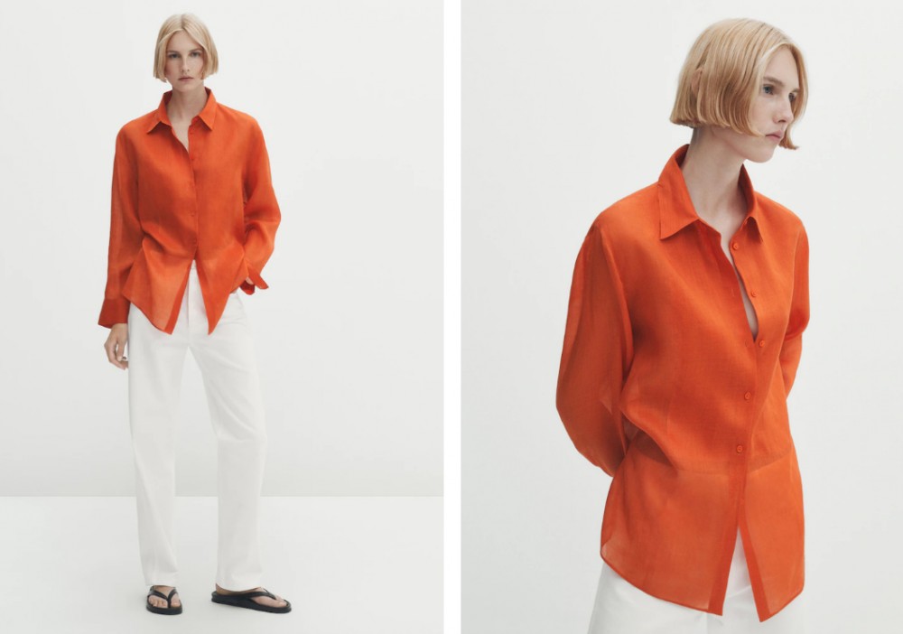 MassimoDutti Рубашка из чистого рами с вставкой на груди Размер М (можно L)