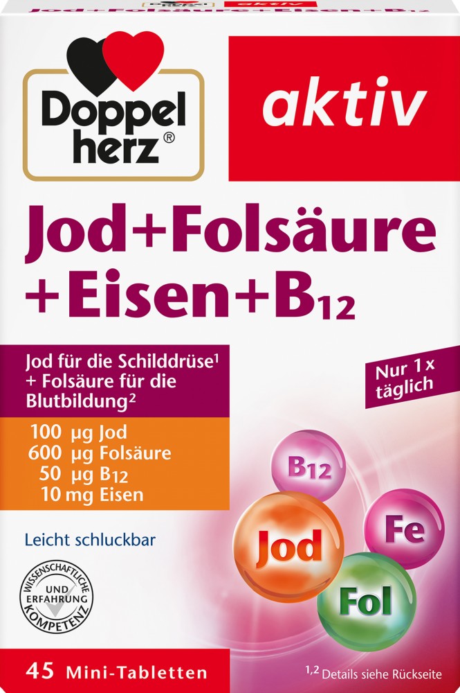 akiv Jod + Fols?ure + Eisen + B12 45 Mini-Tabletten