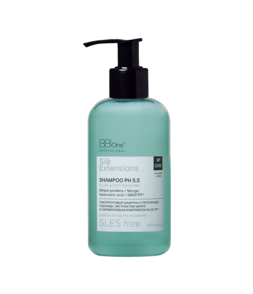 Шампунь Silk extensions Glow & Easy brushing с силиконовым комплексом SiliGY PP, гиалуроновой кислотой, протеинами пшеницы и экстрактом манго деликатно очищает кожу головы и волосы, смягчает, распутывает во время мытья, даже без бальзама шампунь создает эффект “волосок к волоску”. Локоны становятся гладкими, эластичными, увлажненными по всей длине и невероятно блестящими.
