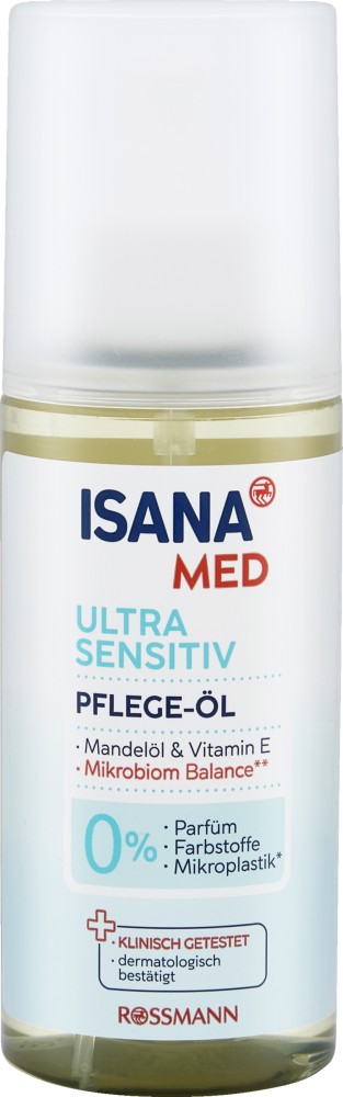 Ultra sensitiv Produkte zeichnen sich durch anspruchsvolle Rezepturen aus, die ganz auf die besonderen Bed?rfnisse sehr sensibler Haut abgestimmt sind. Das Isana med Pflege-?l ist ein wahres Multitalent f?r seidig glatte Haut, intensiv pflegend, verbessert die Elastizit?t der Haut, f?r Gesicht und K?rper. Unterst?tzt den Erhalt einer intakten Hautbarriere sowie ein ausgeglichenes Haut-Mikroniom.