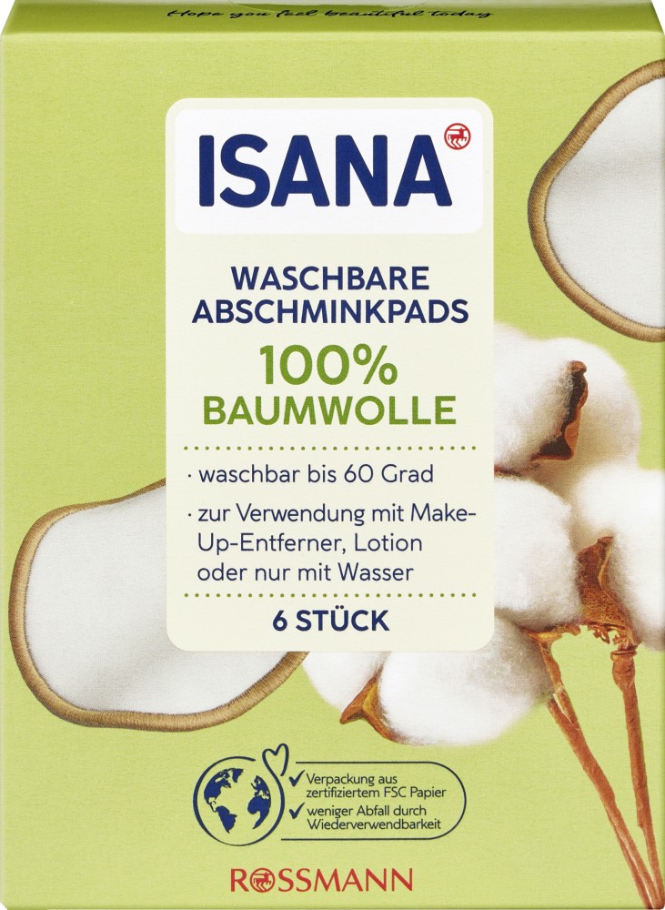 Die weichen ISANA waschbaren Abschminkpads sind eine super Alternative zu Einweg-Wattepads. So tust Du nicht nur dir, sondern auch unserer Umwelt etwas Gutes. Sie reinigen die Haut besonders sanft und schonend. Du kannst sie mit Make-Up-Entferner, Lotionen oder nur mit Wasser verwenden.