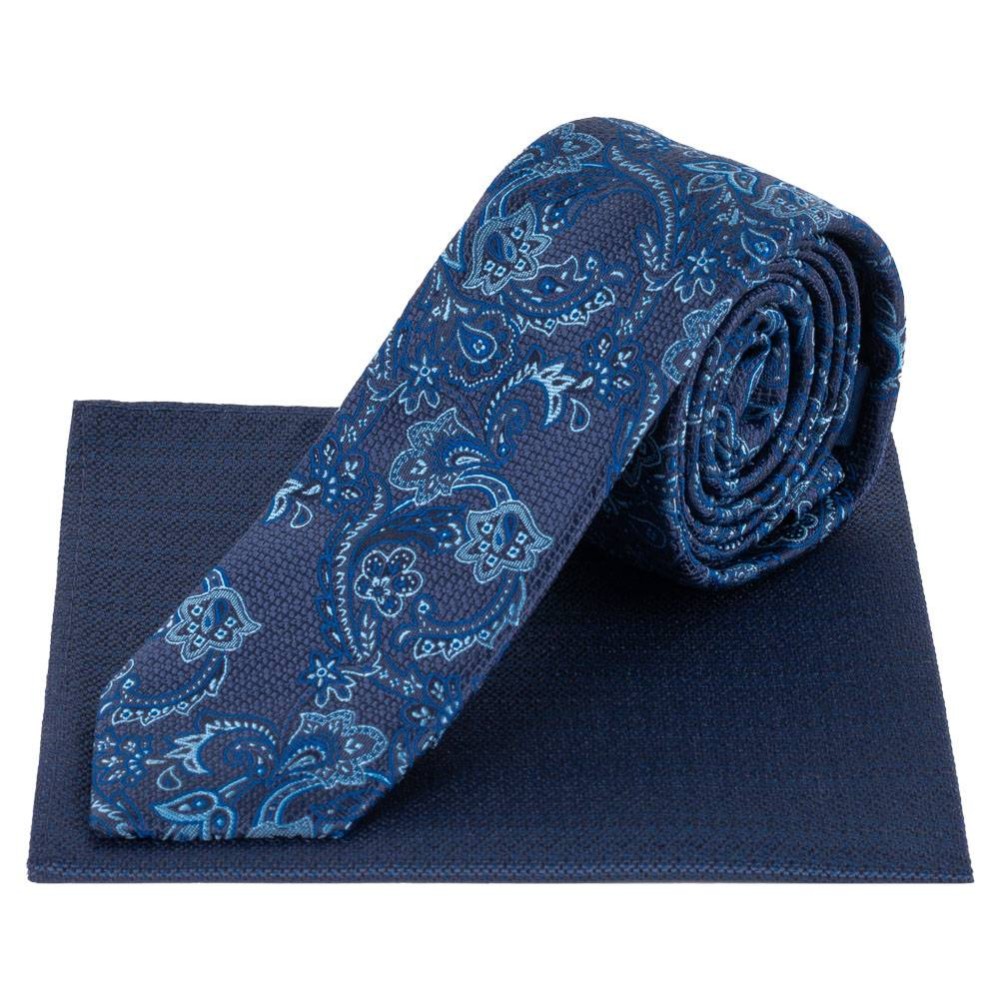 Lambretta Paisley Herren Strickkrawatte und Einstecktuch LAMAW2314-NAVY