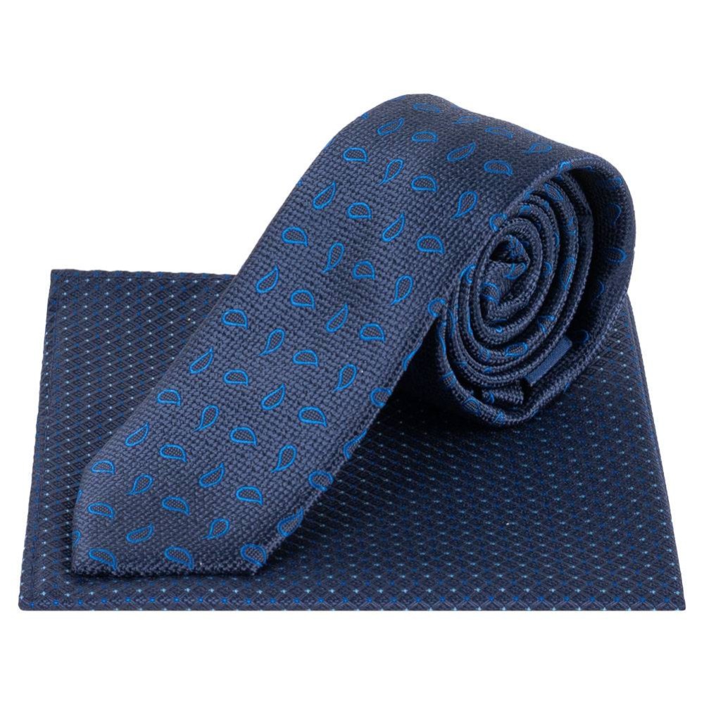 Lambretta Paisley Herren Strickkrawatte und Einstecktuch LAMAW2315-NAVY